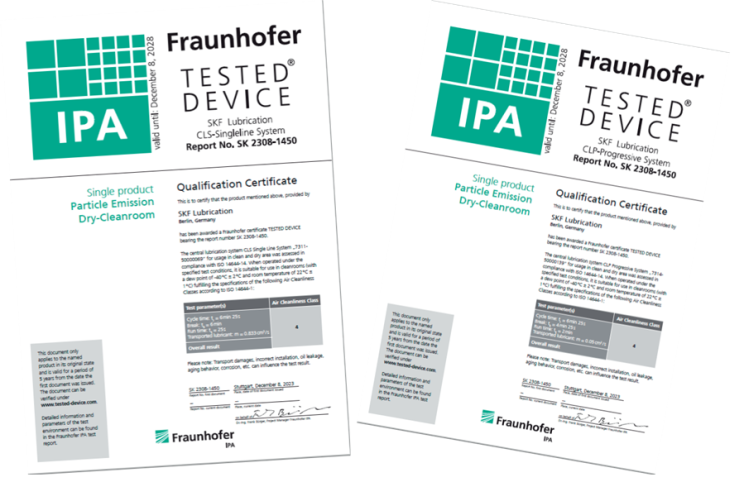弗勞恩霍夫制造工程與自動化研究所(Fraunhofer IPA)對SKF提供的CLP緊湊型遞進潤滑系統和CLS緊湊型單線潤滑系統進行了全面測試和認證。