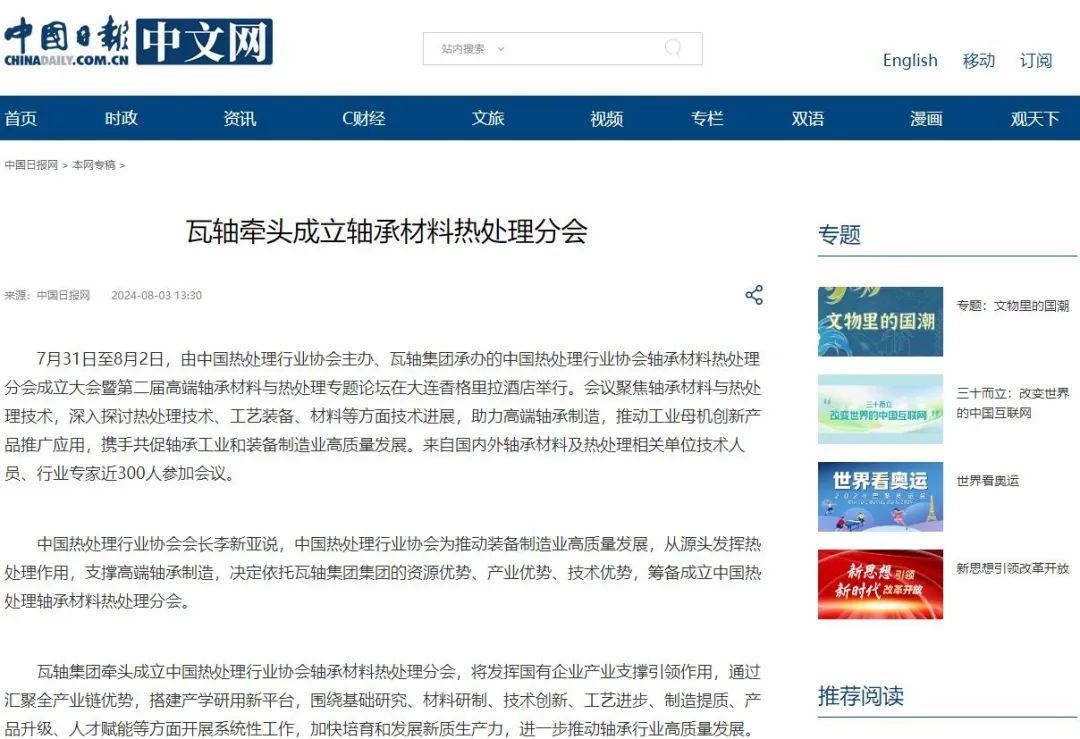 瓦軸牽頭成立軸承材料熱處理分會