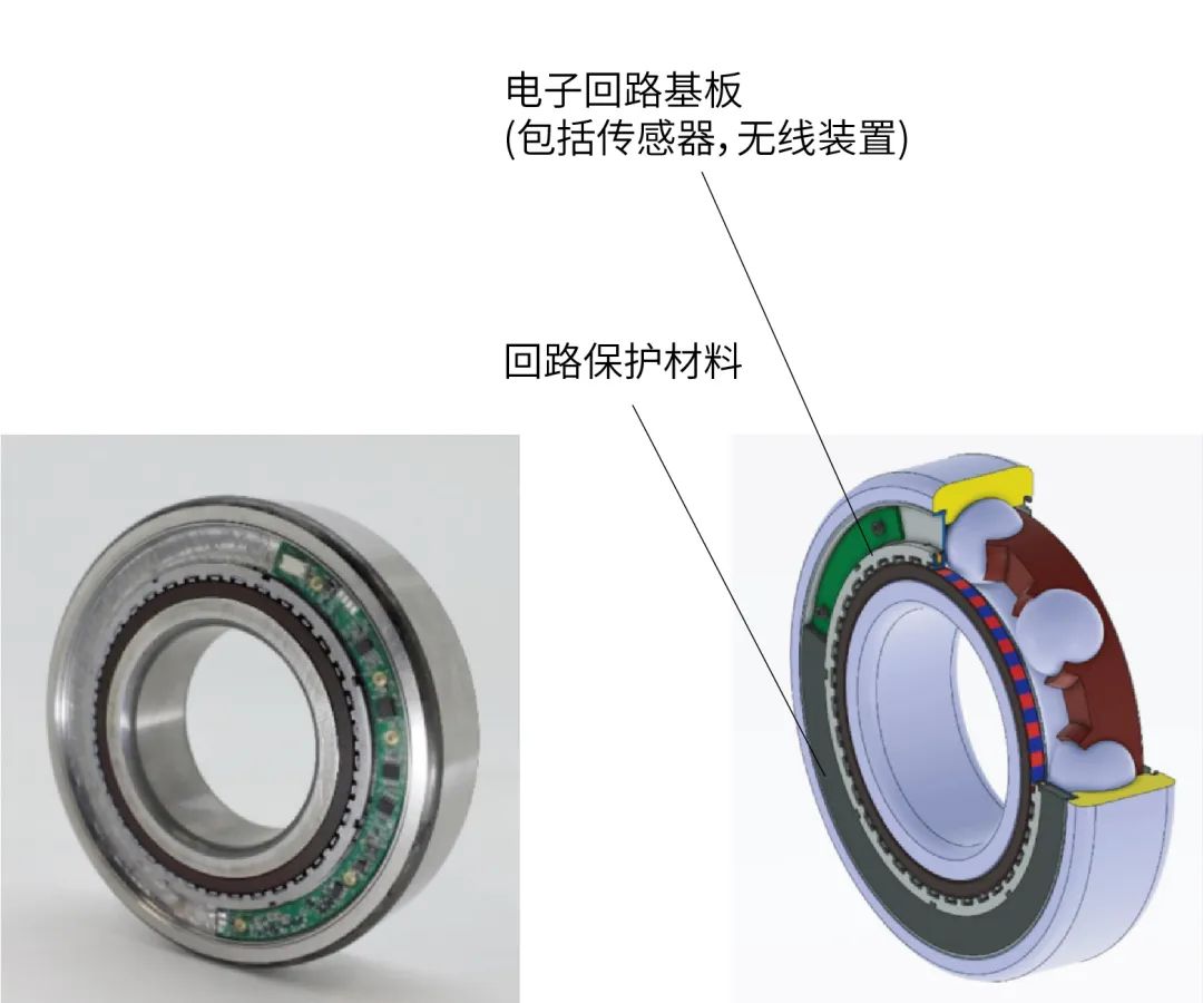 NTN開發了內置傳感功能的優化軸承【會說話的軸承】(圖6)。該軸承與標準型號的軸承具有相同外形尺寸,內部集成了振動、溫度、旋轉傳感器以及發電機、信號處理回路、無線通信單元。軸承通過旋轉發電并將檢測到的結果進行無線傳輸,因此該軸承可以通過自己的話語來傳達信息。